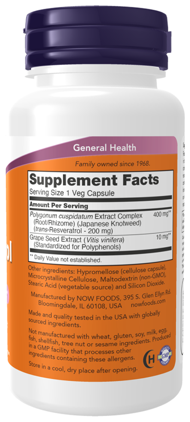 NOW Resveratrol 200 mg, 60 капсул