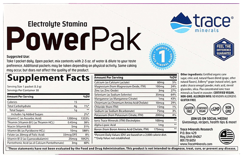Изотоник Trace Minerals Electrolyte Stamina Power Pak, 30 пак